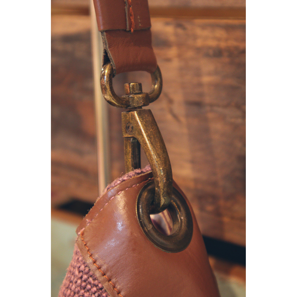 Leather shoulder strap (45cms) with reinforced stitching and brass hardware for style and strength.